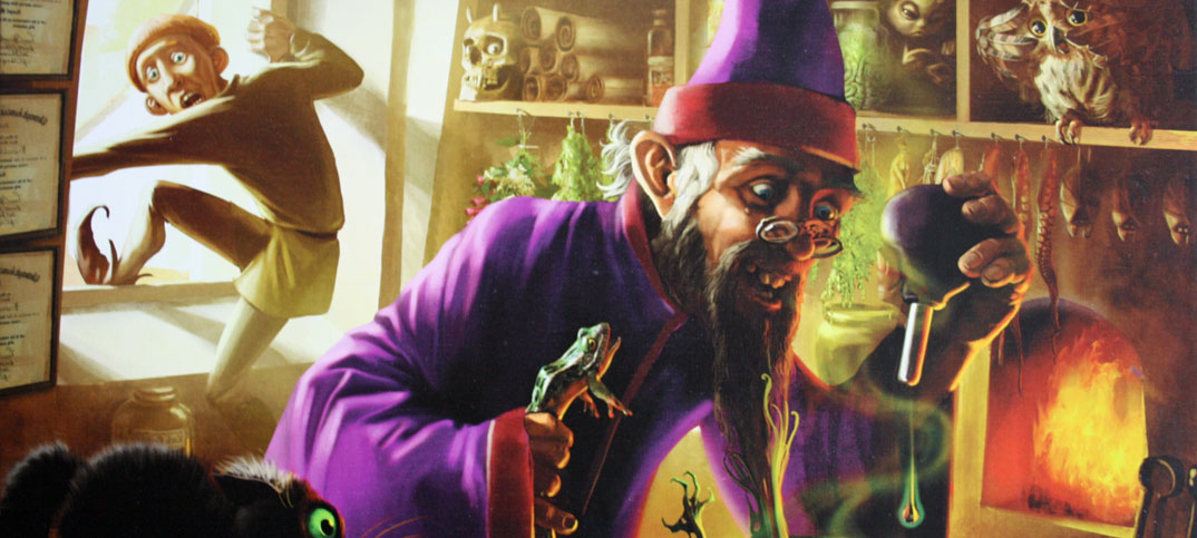 Im neuen Brettspiel von Matús Kotry begeben sich die Spieler als Alchemisten auf die Suche nach Wissen, Ruhm und Reichtum. Hier werden Zutaten gesammelt, Labore ausgestattet, Helfer zu Rate gezogen und spektakuläres Tränke im Kupferkessel zusammengebraut. Jeder neue Trank bringt die Alchemisten dabei weiter, auf der Suche nach den geheimnisvollen Elementen. Allerdings muss jeder Trank auch erst einmal auf seine Wirkung hin getestet werden. Dabei wird notfalls auch mal die eigene geistige Gesundheit in Gefahr gebracht, meistens jedoch nur die Gesundheit unwissender Studenten aufs Spiel gesetzt. Und sollte ein Trank mal nicht den gewünschten Effekt bringen, was solls!. Es wird sich schon ein unwissender Abenteurer finden, der einem das Gebräu abkauft.
