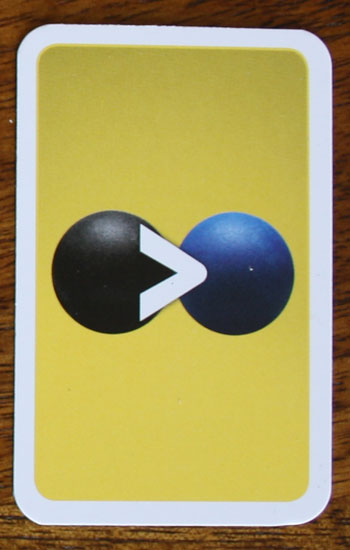 Diese Aufgabenkarte gibt an, wie viele Kugeln beider abgebildeter Farben insgesamt auf dem Spieltableau benutzt werden dürfen. Sind mehr oder weniger Kugeln der beiden Farben im Einsatz, gilt die Aufgabe als nicht geschafft.