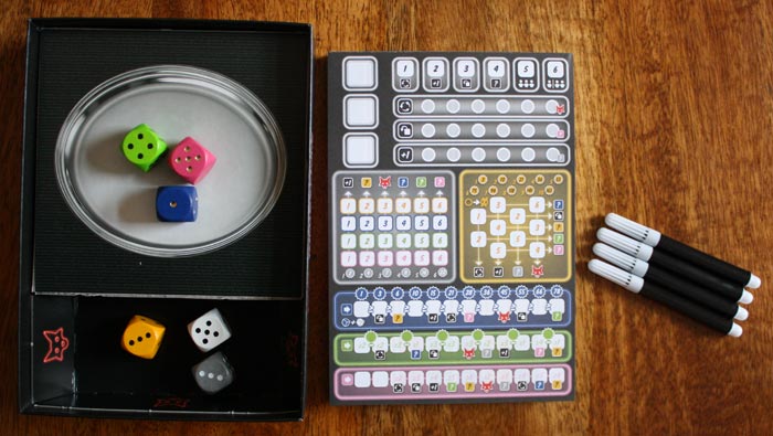 Jetzt kommen auch die roten Füchse endlich zum Einsatz. Hat ein Spieler einen oder mehrere rote Füchse freigegeschaltet, kann er sich pro Fuchs so viele Punkte zusätzlich eintragen, wie er mit seinem “schwächsten” Bereich erreicht hat.
