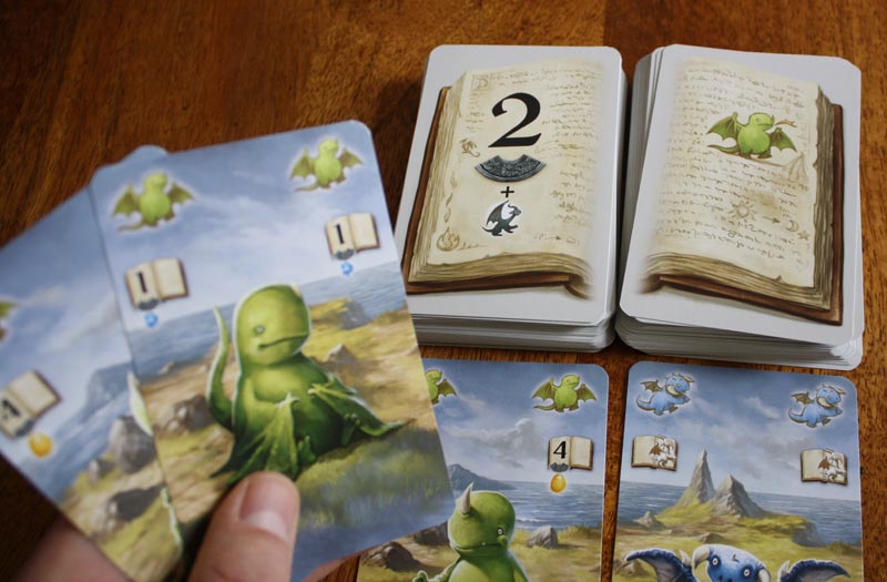 Wir wären alle keine Zauberer, wenn wir das magische Buch nicht auch beeinflussen könnten. Nach dem Aufnehmen neuer Drachenkarten kann ein Spieler auch eine Handkarte nutzen, um so die vorgaben im magischen Buch zu verändern. Hierzu kann er entweder eine passende Karte auf die linke Buchseite (für die Anzahl der Drachen) oder auf die rechte Buchseite (für die Drachenart) zurücklegen.