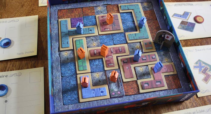 Allein schon von der Aufmachung und dem Zubehör ist das Spiel ein kleines Kunstwerk. Das fängt im Grunde schon mit dem Covermotiv an, zieht sich über die als Tageszeitung aufgemachte Spielanleitung bis hin zu den schönen Spielkomponenten aus Spielbox, Plättchen und Schornsteinen, die den Spielern am Ende einen wunderschönen Blick auf Paris aus der Vogelperspektive bieten. Quasi als i-Tüpfelchen kommen dann noch die wundervoll illustrierten Postkarten hinzu, über die die Sonderaktionen ins Spiel gelangen. Rein optisch ist das Spiel unserer Meinung nach rundum gelungen. Es wirkt frisch und alles passt gut zusammen.